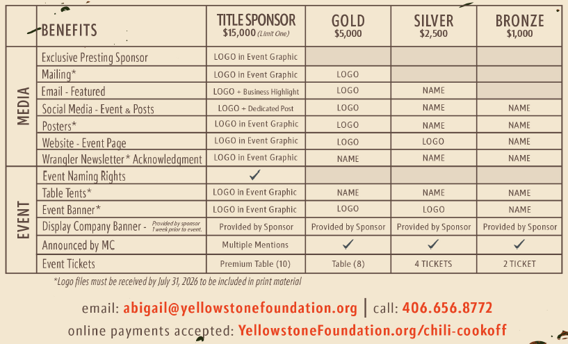 Chili, soda, and water are included with your entry. Collector chili bowls, adult beverages, and extra activities like the heads/tails game, additional horse rides, and raffle will be available for purchase.